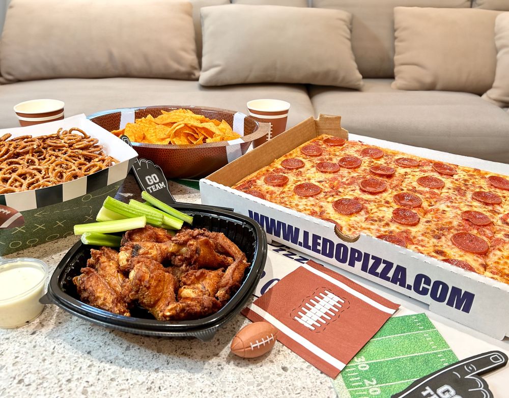 18 1 Topping LEDO Pizza 12 Jumbo Wings. Feeds 46